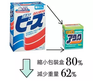 1987年推出了使用少量也能发挥高度清洗力的浓缩型衣物洗涤剂“洁霸”。并成功削减了容器用纸量,以及运输时所消耗的能源。