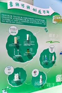 在快闪展区,花王(中国)以可视化数据、实物展示等方式,集中呈现了企业在产品全生命周期中的低碳实践。例如,「碧柔」自在卸妆系列产品的瓶身充分减少塑料用量或使用再生塑料,减少生产环节的碳排放。「芙丽芳丝」从产品原料到外包装均遵循可持续发展理念,积极采用可生物降解配方,产品包装使用可再生原材料,避免资源浪费。“同美共生”展板详细介绍了花王(中国)在生产和经营活动中持续践行ESG的行动和成果。