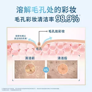 『碧柔清莹净澈洁颜油』搭载花王专利水油智配微乳化体系*4 ,通过科学精准的水油配比,快速溶解各类水油混合型难溶彩妆。仅需3秒*5 即可快速溶妆,轻松卸除顽妆,减少因反复揉搓对肌肤造成的摩擦负担。细致清洁鼻翼、下颚线、发际线等面部“死角”*6 ,实测毛孔彩妆清洁率高达98.9%*2 。