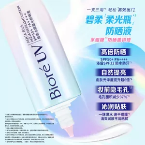 采用花王专利*4 的御光磁吸*5 水微囊防晒技术,微米级覆盖,轻松延展,每瓶含2600万*6 颗防晒水微囊,每次涂抹约使用37万*7 颗防晒水微囊,能够在面部快速均匀形成紫外线防护膜,紧密贴合肌肤,SPF50+,PA++++,防水防汗*1 ,多方位抵御紫外线伤害。「碧柔」专利水微囊防晒黑科技搭配独特的3色珠光立体调色配方,自然提亮肌肤超6倍*2 ,提亮眉骨、苹果肌、鼻梁、下巴等骨相区域,提升面部轮廓感,打造立体骨相美。同时覆盖肌肤表面,填平沟壑,即刻隐匿毛孔37%*3 ,充分展现肌肤匀净*8 透亮。添加玻尿酸*9 及蜂王浆提取物,质地轻盈,流动性强,告别厚重油腻肤感。