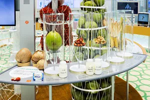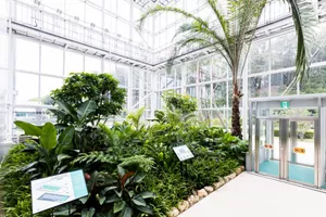 The Greenhouse features oil palms, coconut palms and other plants used as materials for Kao products.
