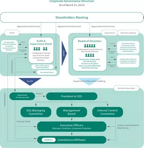 With a membership that consists mainly of personnel at Managing Executive Officer level or higher, the Management Board makes decisions relating to the execution of the mid- to long-term direction and strategy that has been deliberated on and decided on by the Board of Directors. Delegating wide-ranging authority to the Management Board helps to speed up decision-making and execution.