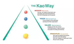 The “Kao Way” embodies our corporate philosophy and is the foundation of Kao’s business activities. Accordingly, it acts as a guiding principle for all of our members, bringing together the growth of our company and that of our individual members. As such, it is an essential element in making the work we do more rewarding and instilling in us a sense of purpose.