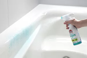 Bathtub being cleaned with the continuous spray mist of Bath Magiclean Air Jet