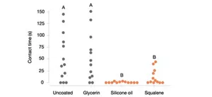 Fig. 2 Leg contact time of mosquitoes accreted on a substrate coated with various liquids