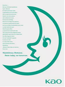 From July 16, 2022, Kao Corporation began developing a corporate advertising series, "Wastefulness–Mottainai. Never today, nor tomorrow.," which demonstrates Kao's corporate stance and initiatives that contribute to the realization of a sustainable society.
