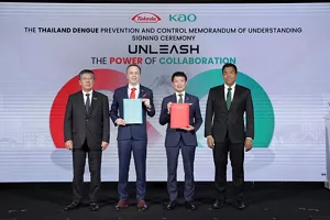 Bangkok, 28 October 2022 — Kao Industrial (Thailand) Co., Ltd. a leading manufacturer of consumer and chemical products, and Takeda (Thailand) Limited, a global biopharmaceutical company, joined hands to combat the country's most pressing endemic priority by signing the Thailand Dengue Prevention and Control Memorandum of Understanding. This is the first long-term collaboration between the two private sector parties to be conducted on a national scale.
