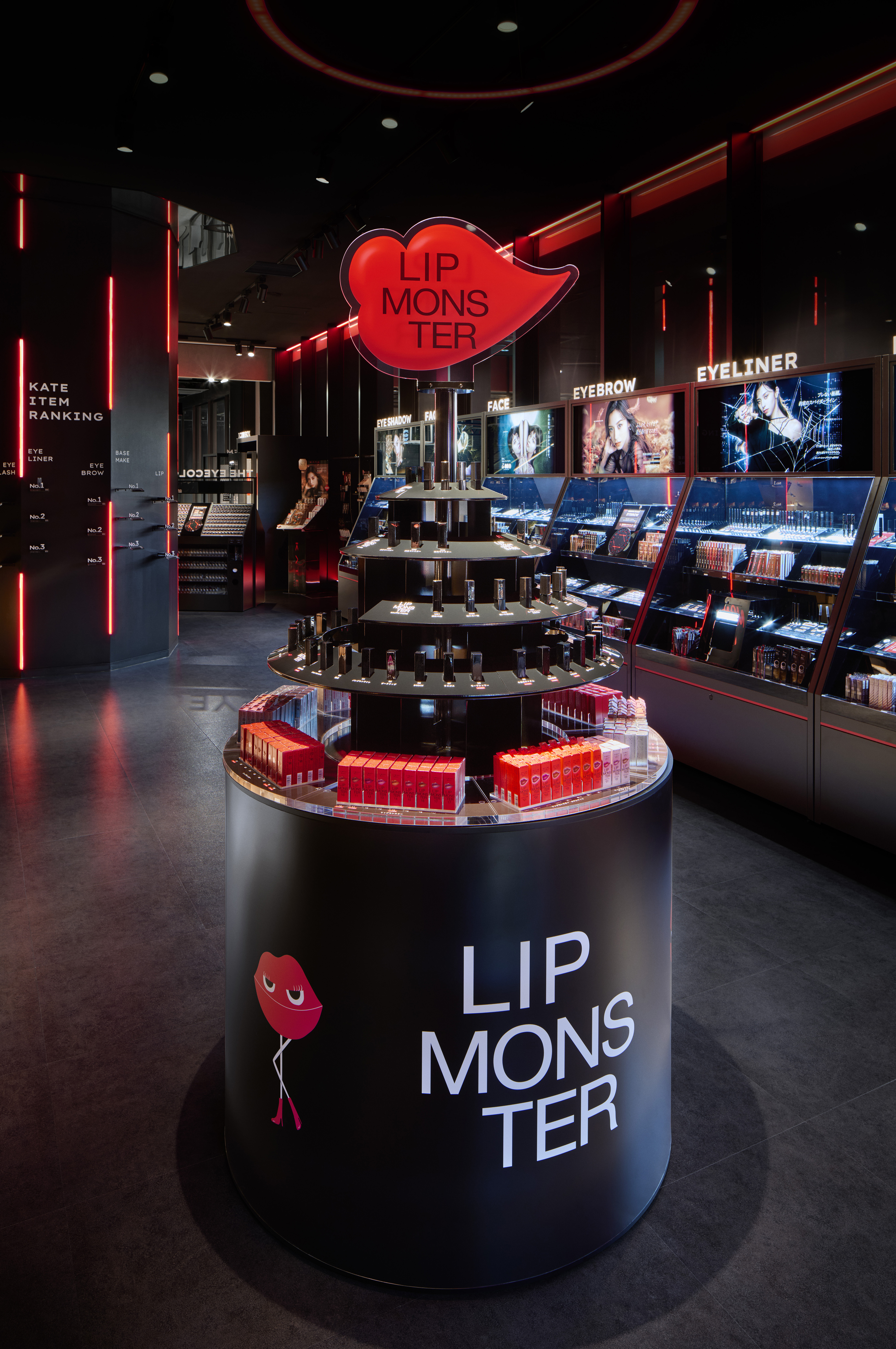 The brand’s first global flagship store, “KATE TOKYO Shibuya Sakura Stage Store,” is located in Shibuya, one of Tokyo’s most lively and diverse districts. KATE encourages customers to express their true selves through the use of makeup, which is reflected in the store’s four themes: TREND, SERENDIPITY, OMO (Online merges with offline), and PRODUCTS. The store features a Lip Monster tower, eye color testers with 108 shades, makeup fixtures with integrated virtual advice, and other unique offerings to provide a multi-sensory experience where the real and digital worlds come together.