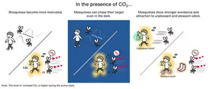 This study revealed that CO2 significantly enhances the sensitivity of mosquitoes to visual and olfactory cues. CO2 strengthens mosquitoes’ behavior of both chasing the target and avoiding unpleasant stimuli. The study also suggested that CO2 may make it easier for mosquitoes to chase humans even at dusk when visibility is poor. These findings are expected to help us better understand when and how mosquitoes bite, and provide important knowledge for devising effective prevention strategies.