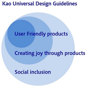 Kao's time-honored concept of Yoki-Monozukuri fuses easily and naturally with universal design, a concept originally coined by Dr. Ronald L. Mace. Kao Universal Design Guidelines further enhance our abilities to provide products and services that meet the needs of all consumers, fostering loyalty and sustained use.