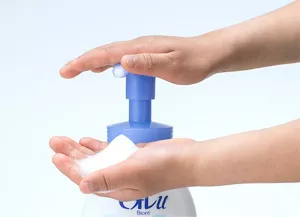 In 2014, as a result of an industry organization led an initiative responding to visually impaired people’s requests, the relevant Japan Industrial Standards (JIS) were revised to add a provision for attaching a “Line Type Tactile Symbol” on body soap containers. The Bioré U body soap range containers launched in April 2015 featured a line-type tactile symbol on the top of the dispenser pump and on the side of the container.