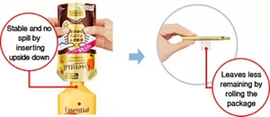 The package can be set easily and quickly to a container compared to refilling, leaving less remaining liquid.