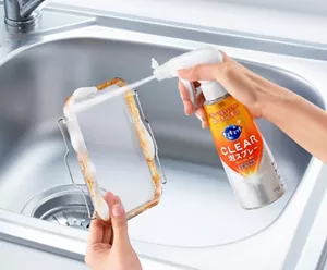 This is a new type of dishwashing detergent with a foam spray that removes dish residue that is hard to wash off with a sponge. We received favorable feedback from people who have inconvenience caused by injuries or health conditions.