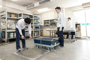Kao uses unique technology based on surfactants science to work on this challenge. Kao succeeded in developing concrete admixtures that ensure high flowability even with low water-to-cement ratios by repeatedly analyzing cement slurries as well as the hardening process.