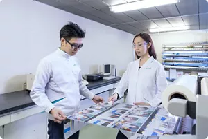 Using proprietary technology, Kao has made various technological breakthroughs in IT materials. Recently, Kao has developed LUNAJET®, the world's first high quality water-based pigmented inkjet ink. This ink is eco-friendly and safe for use in plastic film printing for food products.
