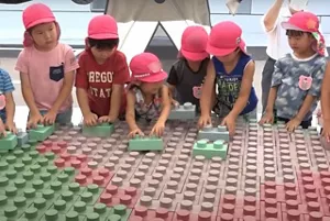 In collaboration with local governments and NPOs in various regions, we are making blocks named “Okaeri-blocks” out of recycled resin from collected refill packs. This initiative demonstrates that consumers can feel the resource recycling of refill packs.