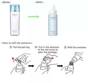 In the case of Sofina beauté Lotion, we developed a refill that allows all the liquid to be transferred completely, without spills. Compared to the original container, use of refill packs has reduced CO2 emissions by about 67%.