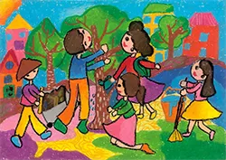 We should be diligent in preserving the environment and my painting was about giving a message to my friends to love the earth. In my painting someone is cleaning the earth and every person is doing something to make the planet happy.