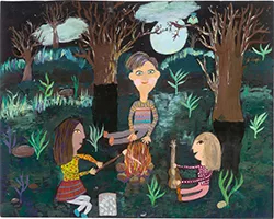 It is generally difficult to depict nighttime scenes, however, this work expresses well the smell of trees and roasted marshmallows by the bonfire, and the cold night air under the moon. Expressions on the work are excellent, such as depicting of the darkness and people’s face lightened by the bonfire.