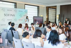 於「美肌之路」展區回顧品牌發展後,SOFINA Brand Manager – Eva Leung及Senior Brand Manager – Julia Chu分別分享了40周年主題背後的理念,以及與在座各位同行多年的感受,衷心感激大家多年來的支持與愛戴,並藉著40周年紀念徽章上的日本傳統水引繩結所承載的連結與緣分,為大家送上真摯祝福與祈願。