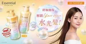 全新日本製『Essential Premium 18-MEA 髮の屏障 水光閃亮系列』,添加水光珍珠蛋白,高效修復髮絲,撫平毛躁打結,防止熱力的損害,打造閃亮水光髮!