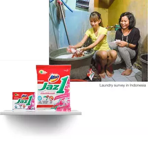 Kao has always been passionate about meeting the needs of local lifestyles. For example, Kao launched Attack Jaz1 in Indonesia in 2014. A survey revealed that many Indonesian people washed their clothes by hand and that the local water was often hard, which makes it more difficult to remove stains. Kao developed new technology to overcome this challenge and succeeded in developing a detergent that demonstrates outstanding cleansing results.