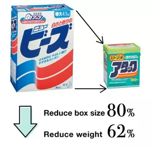 In 1987, Kao launches Attack, a concentrated laundry detergent offering a powerful cleaning solution, which requires only a small amount. This successfully reduces the amount of paper used in the packaging.