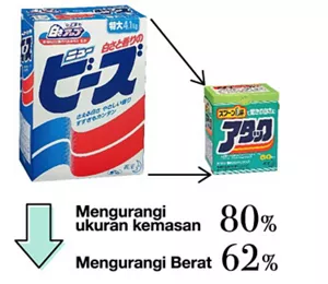 Pada tahun 1987, Kao meluncurkan Attack, sebuah deterjen cuci pekat yang menawarkan larutan pembersih kuat, yang hanya butuh sedikit jika akan digunakan. Ini berhasil mengurangi jumlah kertas yang digunakan dalam pengepakan.