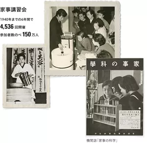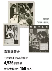 「お客さまのことをもっと知り、よりよい暮らしを提供したい」との想いから、「家事科学研究所(1937年に長瀬家事科学研究所と改名)」を設立。科学的で合理的な家事を研究し、発表会、講習会、座談会、映画会などで発信しました。それは同時にお客さまとの直接対話の機会でもありました。また、機関誌「家事の科学」(1937年)を通じて、当時の日本に新しい生活文化を提案していきました。