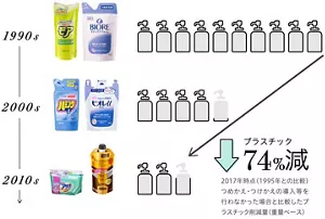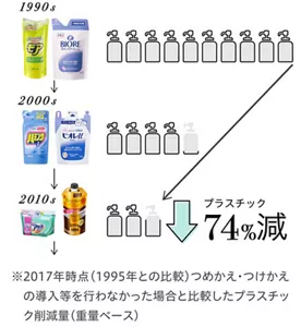 つめかえ・つけかえ用製品への切り替えとプラスチック量の削減