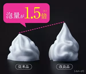 そこでこのたび、「ビオレu ザ ボディ」シリーズの最も主力となる「泡タイプ ボディウォッシュ」をリニューアルします。独自開発のポンプフォーマーの採用により、当社従来品と比較して1プッシュあたりの泡量を1.5倍*1 にすることができました。さらに、泡持続処方により、洗っている間も泡がへたりにくくなりました。このような、泡の量と泡もちを高めるリニューアルにより、さらに心地の良い手のひら洗いが体感できるようになりました。また、環境配慮の観点から、本体*3 とつめかえ用*3 の容器もリニューアルし、100%再生プラスチック(ポリエチレンテレフタレート<PET>)を採用しました。