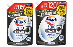 あわせて、自動投入機能の利用割合が高いドラム式洗濯機保有者の多くの方にご愛用いただいていると考えている、「アタック ZERO(ゼロ) ドラム式専用」もつめかえ用パッケージを改良します。アタック ZEROは、補充の頻度を減らせ、補充タンク内で固まりにくく、自動投入にも最適な商品*3 であることを、従来以上に分かりやすく伝えてまいります。