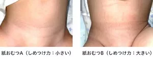 図1 紙おむつの腹部へのしめつけによるゴム跡の違い(顕著な例)