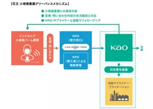 パーム油を使用する花王と、ビジネスと人権を専門とするNPOのCRT日本委員会が協働で、油脂サプライヤー・プランテーション会社と共に、小規模パーム農園(農家)の苦情や問い合わせに直接対応。