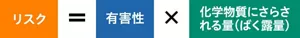 化学物質がヒトの健康や環境に好ましくない影響を与える可能性を「化学物質のリスク」といいます。化学物質のリスクの大きさは、化学物質の持つ有害性と、その化学物質にさらされる量(ばく露量)によって決まります。