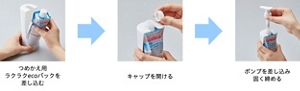 3ステップでつけかえが完了。最後まで使い切れるラクラクecoパック専用のつけかえホルダーを発売しました。