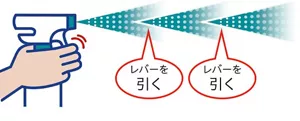 テコの原理を使い、従来よりも軽い力で押してスプレーすることができる容器にしました。缶の側面には凸凹がついており、すべらずしっかりと持てます。