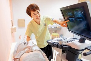 エコーで膀胱の状態をチェック。患者さんに見せながら丁寧に説明
