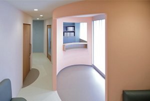 佐藤先生のクリニック待合室。柔らかなイメージでリラックスできるように配慮