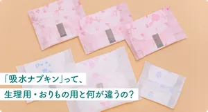 生理用ナプキンは、粘度のある経血が少しずつ出続けることを想定し、経血がデリケートゾーンへ広がってしまわないように、体にフィットして吸収する機能があります。一方、吸水ナプキンなどの吸水ケア専用品は、尿のようにさらさらした液体が一度にある程度出ても大丈夫なように、それらをしっかり受けとめて、素早く吸い込む機能があります。また、尿独特のニオイを消臭する機能が備わったものも。