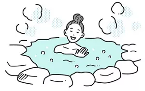 炭酸泉につかると、皮膚から吸収された炭酸ガスが皮膚血管を拡張し、全身の皮膚血流を促進させることができます。体温より高いお湯につかるとお湯の熱が身体に伝わり、体温を効果的に上げることができます2)し、反対に体温より低いお湯の場合は、皮膚の表面に流れている血液の温度が下がるため体温が低下し、涼感が得られます3)。