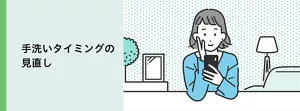 それに加えて、無意識に手で顔を触りがちなシチュエーションの前後に、手洗いや消毒液で「手」を清潔に保つことも重要です。「食事の前」「帰宅した時」「デスクワーク/学校での授業の前後」など、ふと顔を触ってしまう手を清潔に保つことができるように、手をきれいにリセットするタイミングをあらためて考えてみてください。