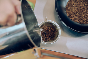 世界中の産地から原料を取り寄せ検討、理想の味を求め、抽出温度・抽出時間など、100種類以上の抽出条件を検討し絞りこんでいく。
