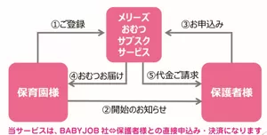 乳幼児用紙おむつ「メリーズ」を保育施設に定額でお届けします。また、花王の手指衛生の知見を活かした正しい手洗いや手指消毒液の使い方などが学べる「教育コンテンツの提供」、保育施設内を衛生的に清掃するための商品販売やノウハウ提供を行なう「保育園内衛生環境づくり」も備え、快適な保育園生活を総合的にサポートしています。