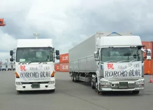 積み荷の移動にクレーンが不要で、災害時の支援物資などの輸送に有効なRORO船*1 の定期航路化を進める和歌山県と連携し、和歌山市近隣企業や運送会社と協力して2022年6月に試験輸送を実施した結果、2022年10月8日(土)から毎週土曜日の定期航路として就航が実現しました。