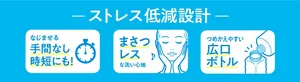 また、環境配慮の観点から、容器ボトル*2 は100%再生プラスチック(ポリエチレンテレフタレート<PET>)を採用。さらにつめかえやすさの向上のために、本体ボトルは広口に設計しました。