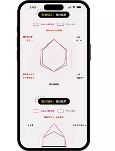 『Beauty Chart』は、食事内容、栄養バランス、睡眠の質、運動の頻度などの要素を総合的に評価し、これらの要素と髪や肌の問題との関連性を分析することで、美しい髪と肌を維持するために必要な情報を提供します。美容室を訪れたお客さまがご自身の情報を入力すると、アプリが髪・肌の現在の状態を推定。結果をもとに、美容師から効果的なケア方法など、未来の美しさにつながるアドバイスが得られます。