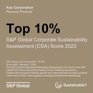 花王株式会社は、このたび世界有数のインデックスプロバイダーであるS&Pグローバル社(本拠地:米国)によるサステナビリティ評価において、「トップ10%」に選定されました。