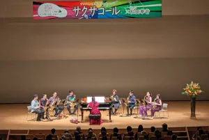 公演には、世界でも珍しいサックス八重奏団Saxaccord(以下、サクサコール)と、クラシックからジャズまで幅広く活動するピアニストの中野翔太さんが出演しました。多彩なプログラムによる、重厚感あふれる迫力ある演奏で、来場された皆さまの心に残るコンサートとなりました。