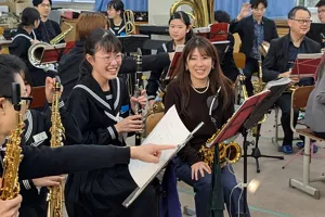 その後、四国大会でも入賞する実力校である同校吹奏楽部の皆さんを対象に指導会を実施しました。プロの音出しの方法やアンサンブル時の注意点など、日頃の練習に役立つ貴重なアドバイスが伝えられ、共に演奏した時間は、生徒の皆さんにとって忘れられない体験となりました。